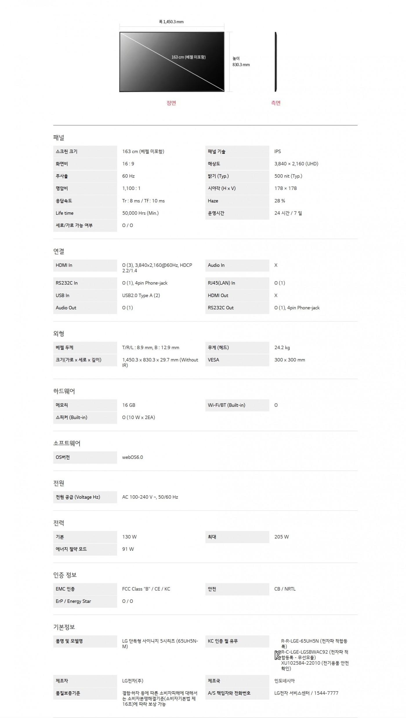 사이니지 LG 단독형 사이니지 5시리즈 65UH5N-M