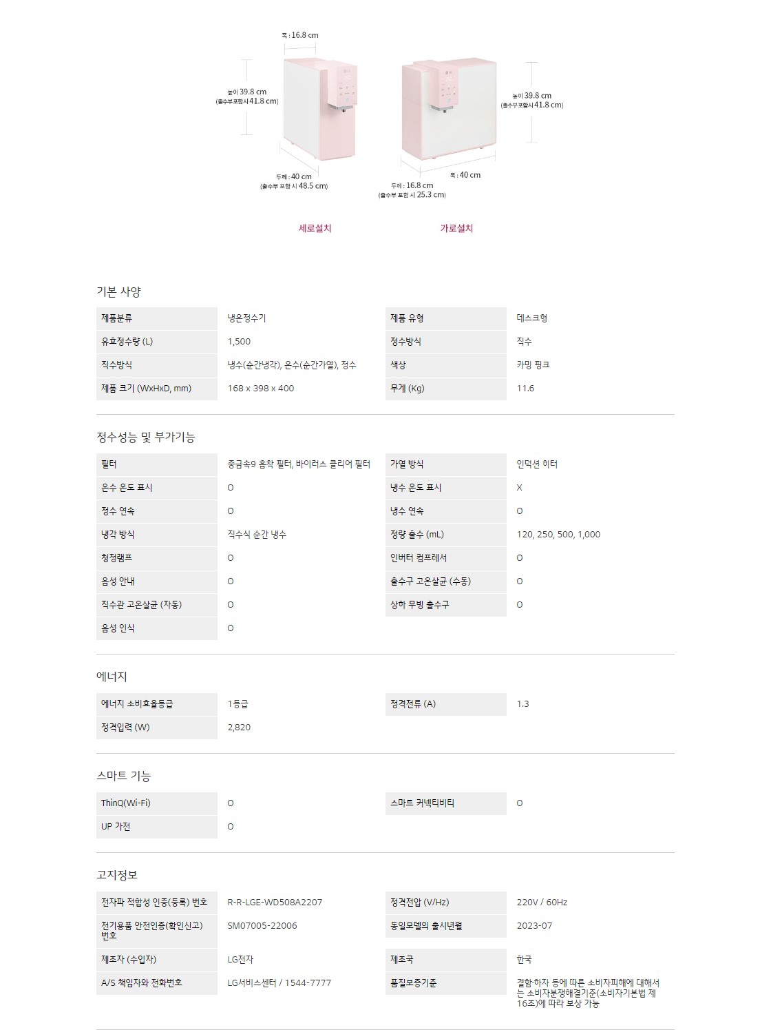 LG 퓨리케어 오브제컬렉션 정수기(음성인식/맞춤 출수, 냉온정)