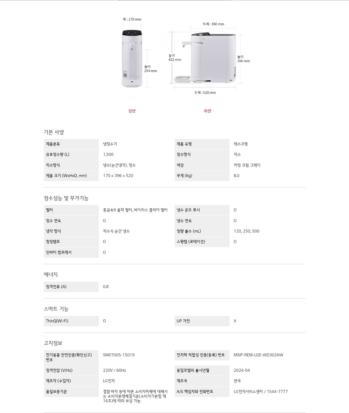 LG 퓨리케어 오브제컬렉션 정수기(스윙, 냉정)