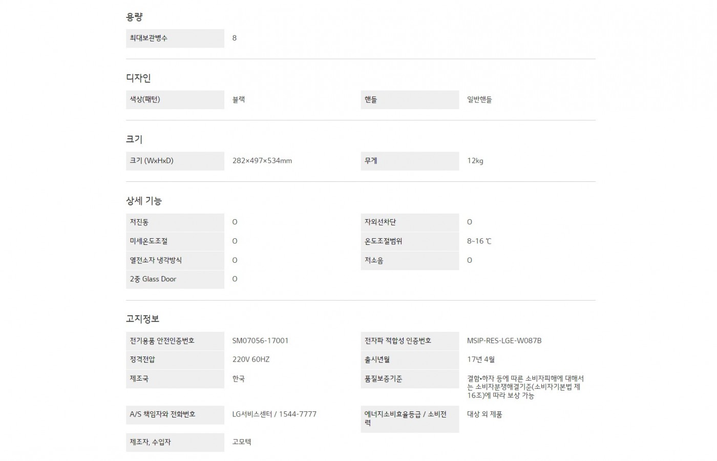 크기 (WxHxD) : 282 × 497 × 534 mm
