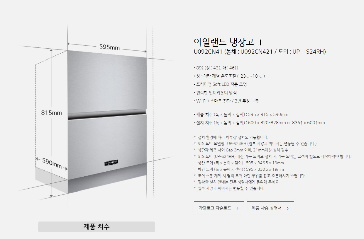 용량 : 89L (상 : 43, 하 : 46)크기(폭 x 높이 x 깊이) : 595 x 815 x 590mm